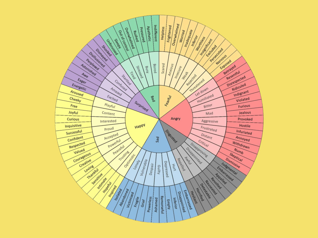 A tool to help Autistic and ADHD folk describe the emotion they're feeling, beyond the high level feelings of happy, sad, angry.